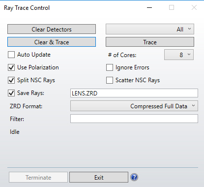 Figure 4: Ray trace control window