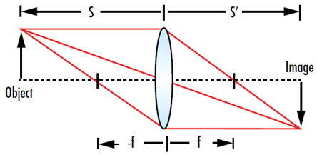 Figure 4: The thin lens equation allows the position of an image (s’) to be determined when the distance from the lens to the object (s) and the focal length of the lens (f) are known