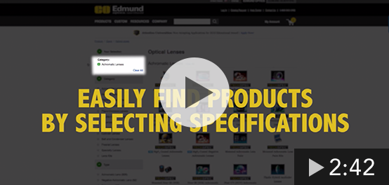 Edmund Optics now features an improved specification search! This specification search allows you to quickly find products by selecting specifications based on the specific product you are looking for.
