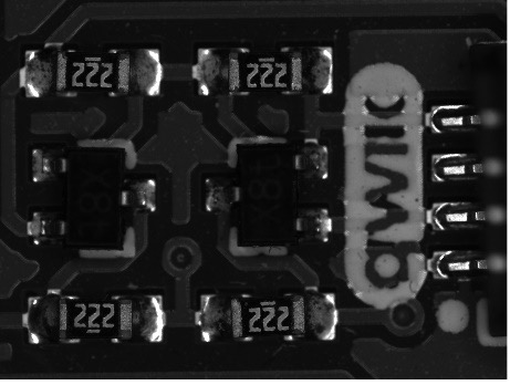 Table 2 shows images of the same parts captured with the 0.69X CobaltTL Telecentric Lens. Compared to the previous images taken with fixed focal length lenses, the telecentric lens has a much smaller field of view (FOV), so only specific regions of interest of the sample objects are shown. At this small FOV, the effects of any glare are reduced and it appears that the brightfield ring light effectively illuminates all of the objects above. Minor hotspots can still be observed on the reflective parts depending on the topography of the object as seen on the curved solder spots of the PCB.