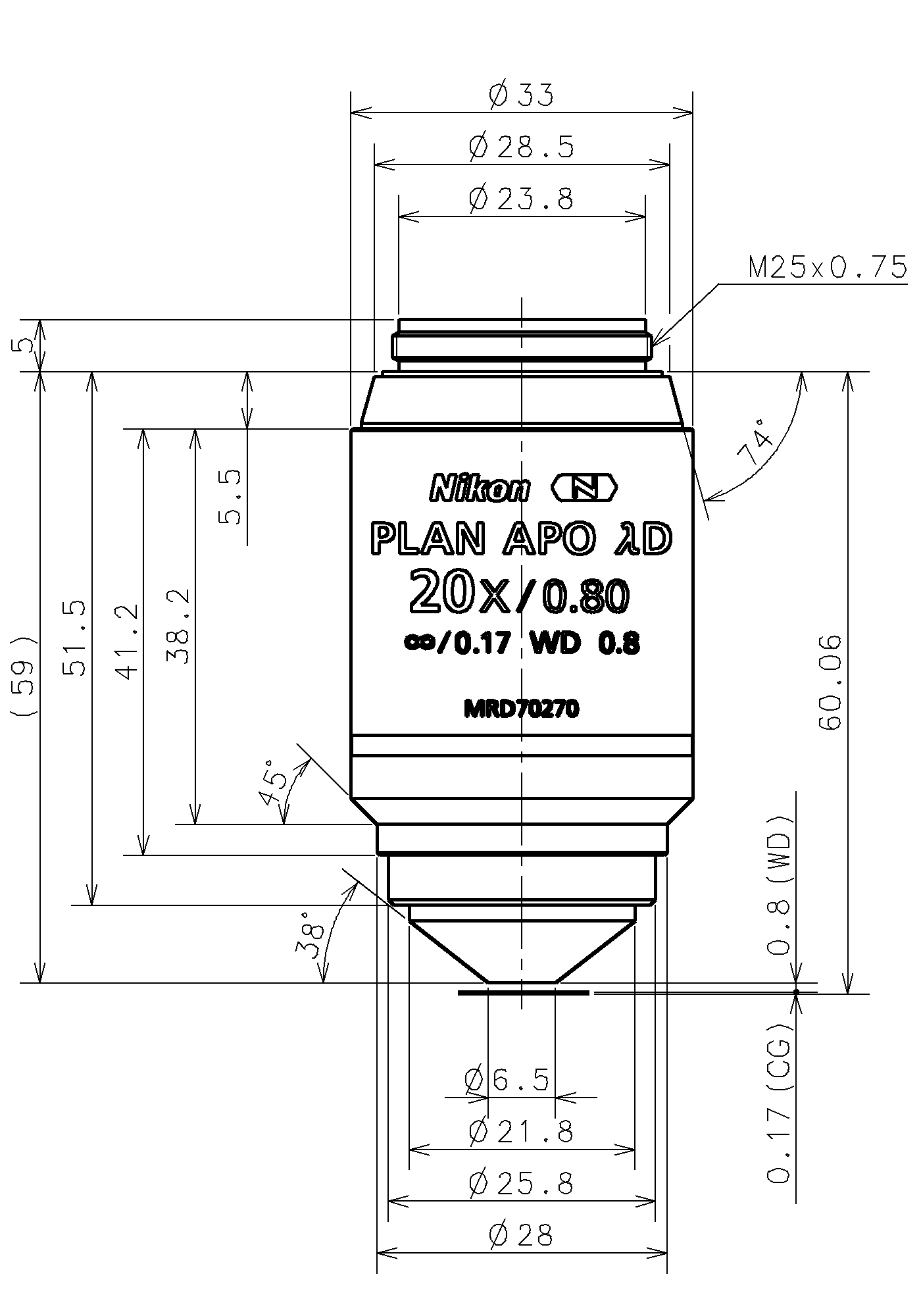 The Nikon CFI Plan Apochromat Lambda D objectives deliver ultra-flat, high-resolution imaging across a wide 25 mm FN, ensuring edge-to-edge clarity, which is ideal for digital imaging, image stitching, and high-content analysis. These objectives are engineered with advanced chromatic aberration correction from UV to NIR (405-850nm), delivering true-to-color images across multiple fluorescence channels without needing to change objectives, ensuring accurate multicolor imaging with minimal color fringing. Nikon CFI Plan Apochromat Lambda D Objectives offer versatile compatibility with a wide range of microscopy techniques, including brightfield, fluorescence, differential interference contrast (DIC), phase contrast, and polarization. Available in magnifications from 2X up to 100X, these objectives are easily integrable into existing microscope systems with Nikon standard M25 x 0.75 mounting threads. The bright images, large fields, and broad color fidelity make these objectives ideal for application in pharmaceuticals, high content screening, and live cell and fluorescence imaging.