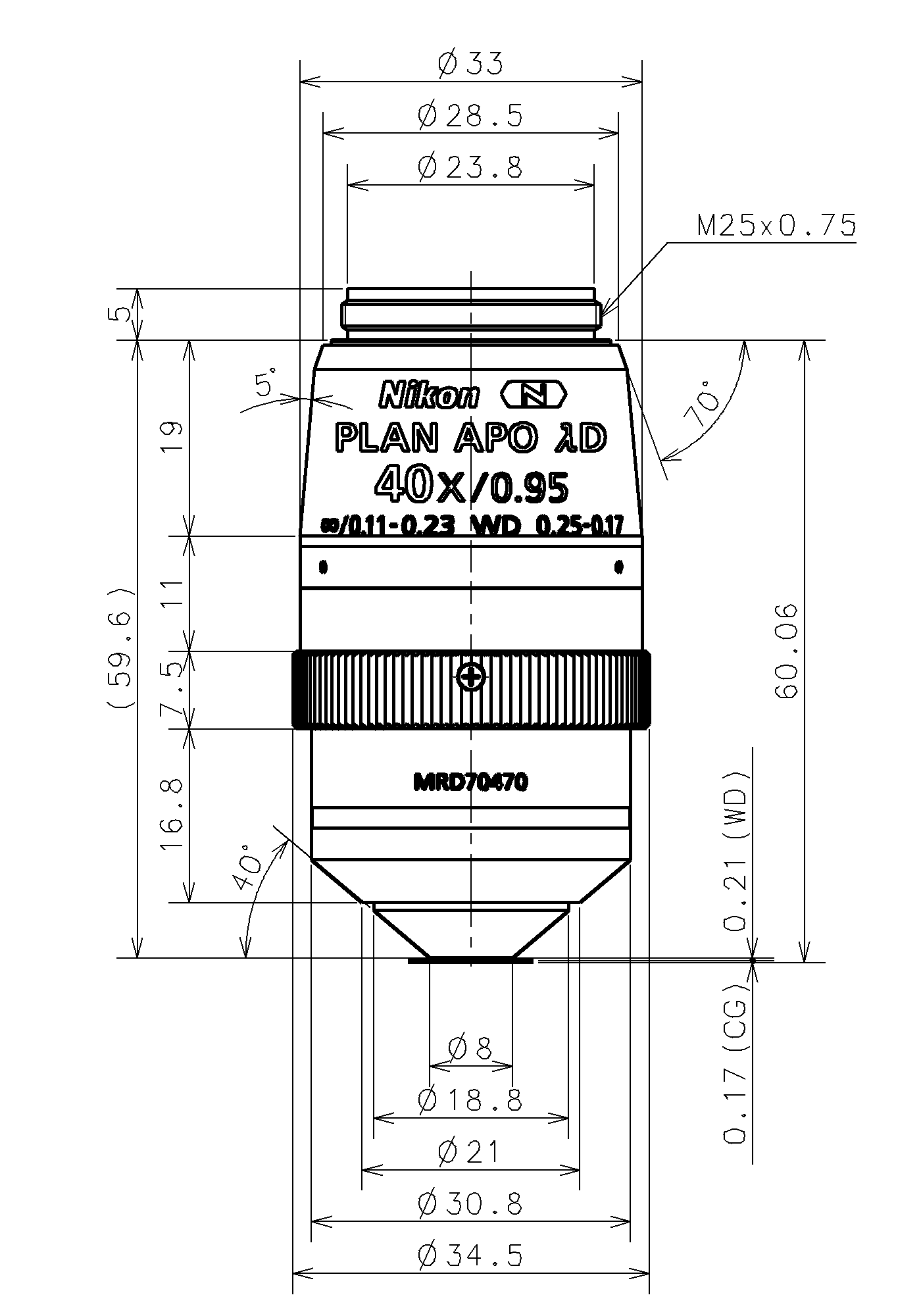 The Nikon CFI Plan Apochromat Lambda D objectives deliver ultra-flat, high-resolution imaging across a wide 25 mm FN, ensuring edge-to-edge clarity, which is ideal for digital imaging, image stitching, and high-content analysis. These objectives are engineered with advanced chromatic aberration correction from UV to NIR (405-850nm), delivering true-to-color images across multiple fluorescence channels without needing to change objectives, ensuring accurate multicolor imaging with minimal color fringing. Nikon CFI Plan Apochromat Lambda D Objectives offer versatile compatibility with a wide range of microscopy techniques, including brightfield, fluorescence, differential interference contrast (DIC), phase contrast, and polarization. Available in magnifications from 2X up to 100X, these objectives are easily integrable into existing microscope systems with Nikon standard M25 x 0.75 mounting threads. The bright images, large fields, and broad color fidelity make these objectives ideal for application in pharmaceuticals, high content screening, and live cell and fluorescence imaging.